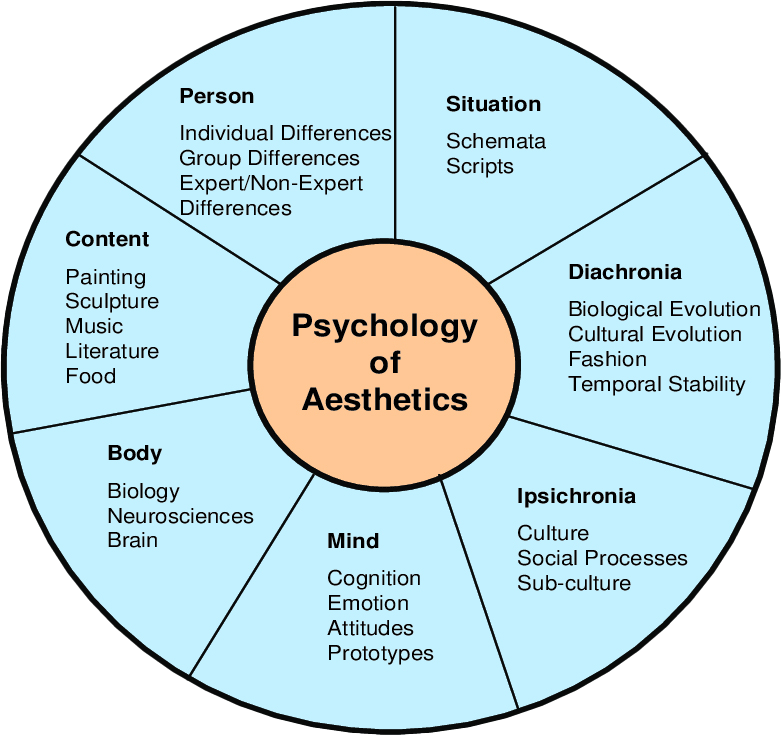 For example, experimental aesthetics mainly deals with research on art, as well as artefacts in a wider sense, whereas human attractiveness research is mainly dealt with in social psychology. To extrapolate further, there are many overlapping areas that cover numerous aspects of aesthetic preferences such as the psychology of music, anthropology, evolutionary biology and architecture.